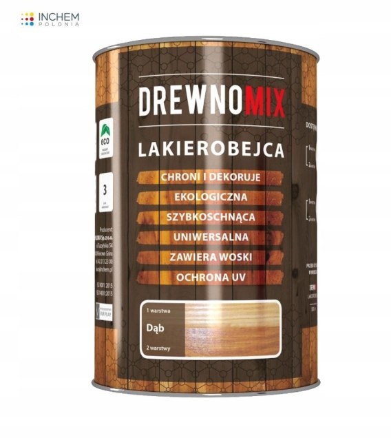 Nowoczesną lakierobejcę DrewnoMIX można stosować zarówno wewnątrz jak i na zewnątrz pomieszczeń. Chroni przed wilgocią i brudem tworząc powłokę odporną na pleśń i grzyby powierzchniowe. Zawarte w lakierobejcy woski zwiększają odporność powłoki na uszkodzenia mechaniczne i wodę. Podkreśla naturalny rysunek słojów, nadając drewnu estetyczny wygląd.
